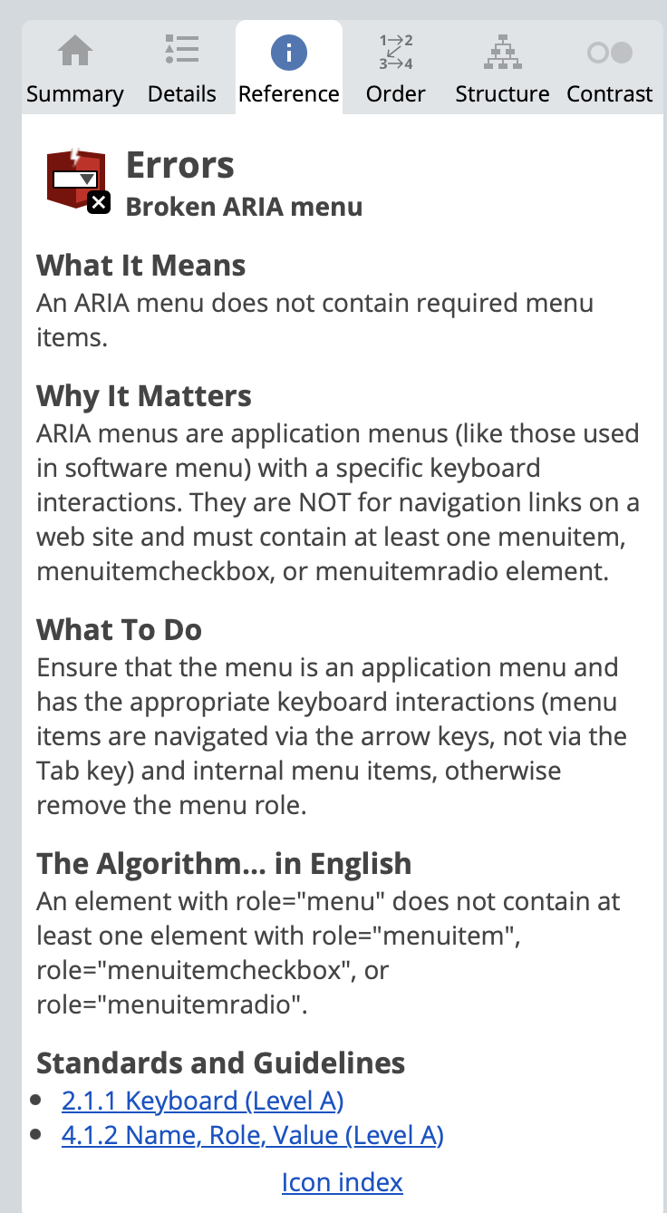 I tried to add the aria-label="menu" everywhere, but the error remains. Does anyone have experience with this?