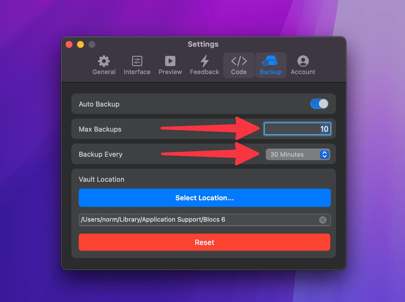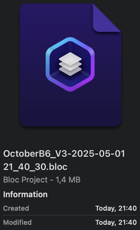 I have this project, the full Blocs file is 6 MB. But the automatic backups i ~/Library/Application Support/Blocs 6/backup-vault/projectname is 4.3 GB each. Seems it’s the resource fork part of the backup files being huge, above the recommended max size.