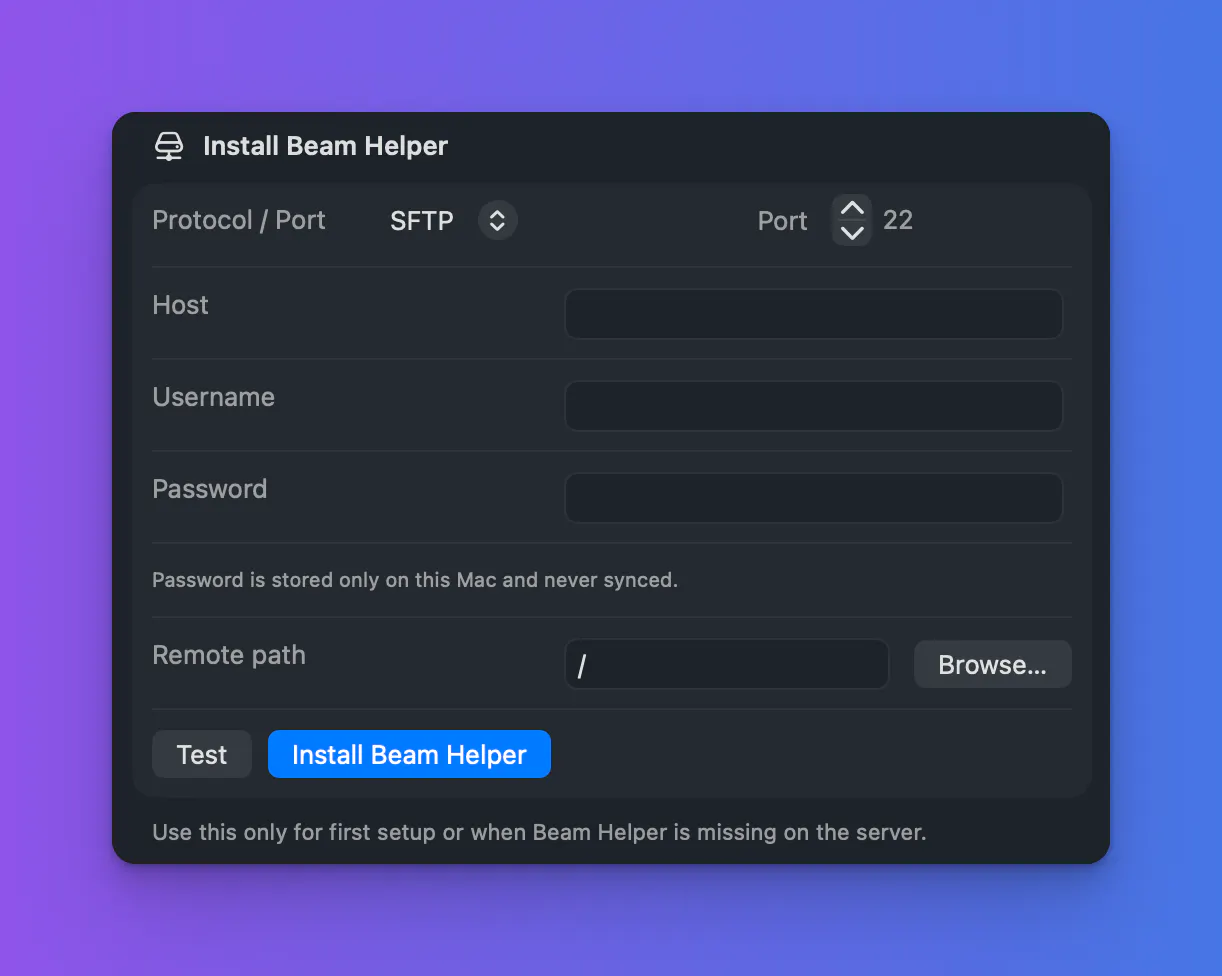 The helper no longer needs to be installed manually. You simply enter the login credentials for the FTP server and can then install the helper within the app.