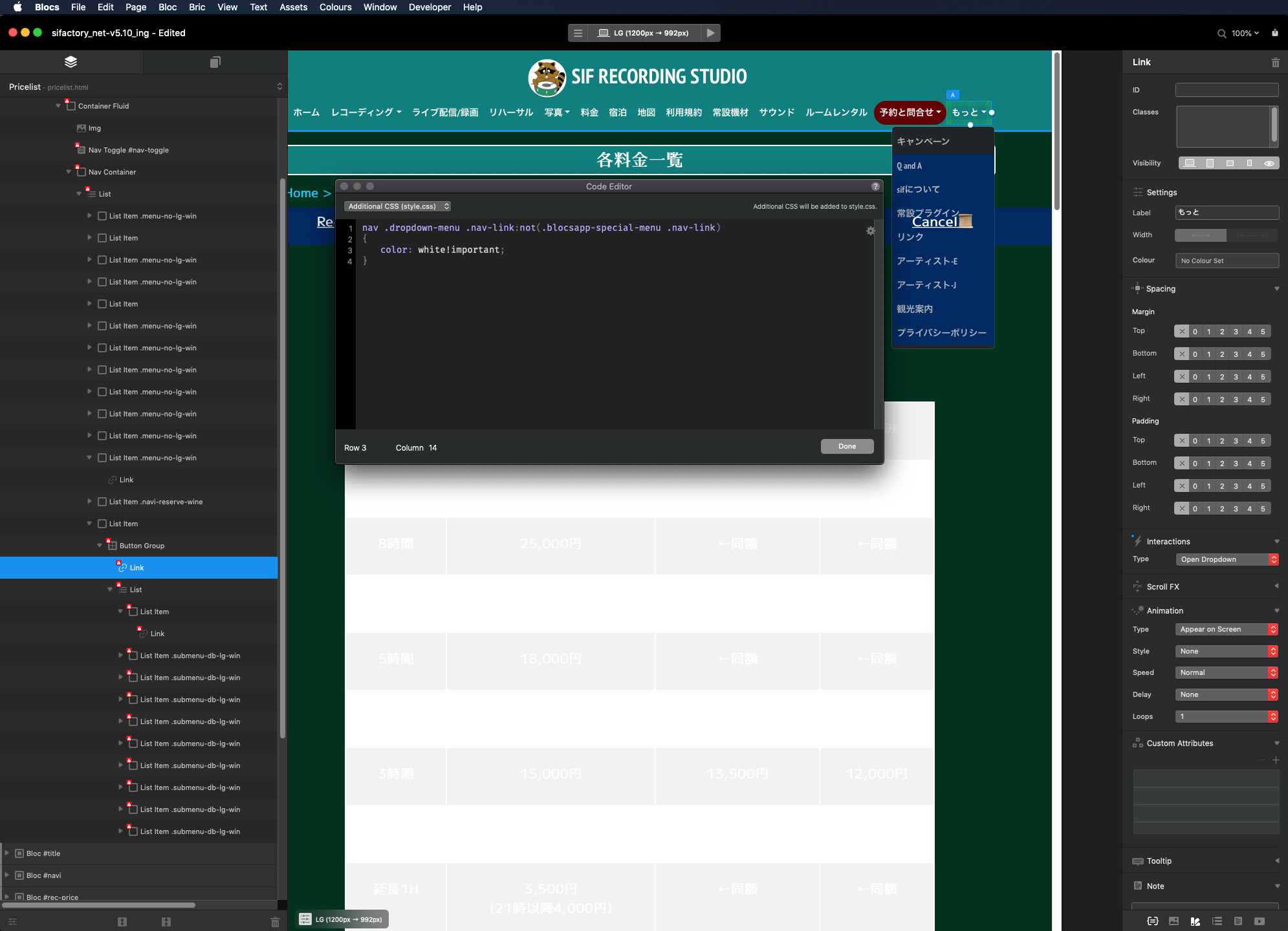 In Blocs for Mac 5.1 we have updated how link colours work within the navigation drop downs. Previously they would be set to whichever colour you set the normal navigation link colours when using the Global Swatch options in the sidebar.