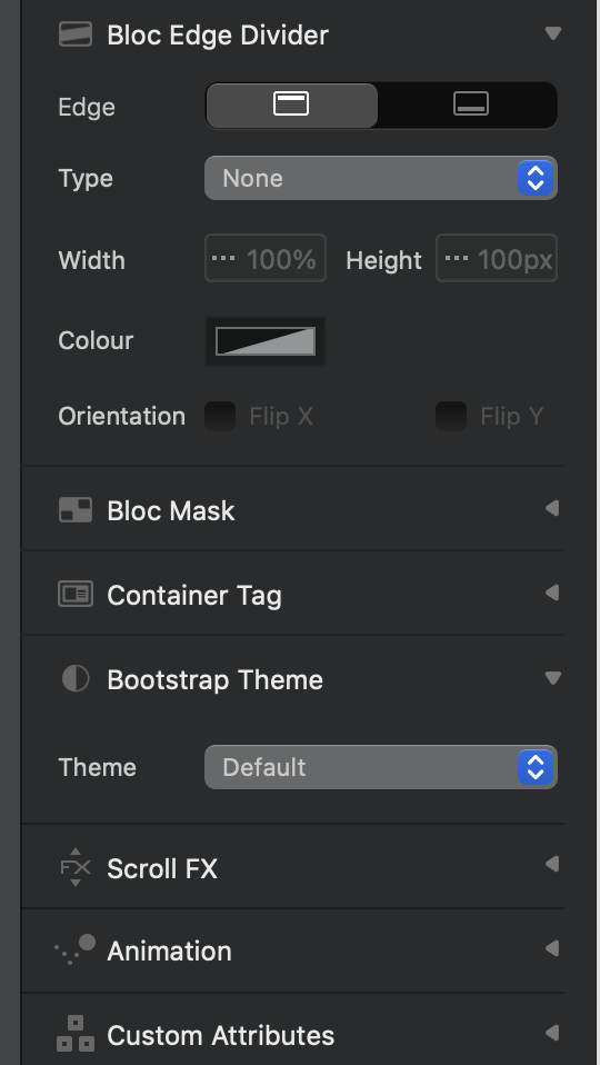 Remember themes (or colour modes) are not enabled by default in Blocs, you switch those on per Bloc or container. So if you want to use and customise the dark theme, you are will need to read up on Bootstrap 5 themes/colour modes and write a little CSS.