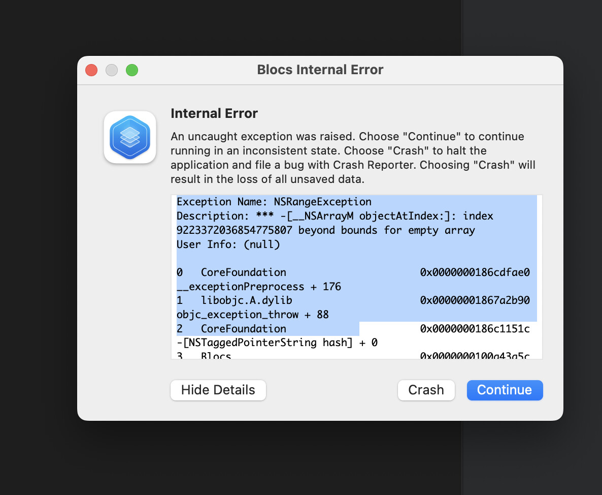Description: *** -[__NSArrayM objectAtIndex:]: index 9223372036854775807 beyond bounds for empty array