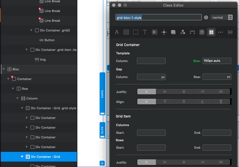 Not sure if this is specific to B2, but if I create 2 grids using the grid bric, the first grid (container) gets an auto generated Class called grid-style that appears in the tree. The second grid (container) does not display an auto generated Class in the tree, but on further examination of the list of classes, one is created called grid-bloc-1-style.
