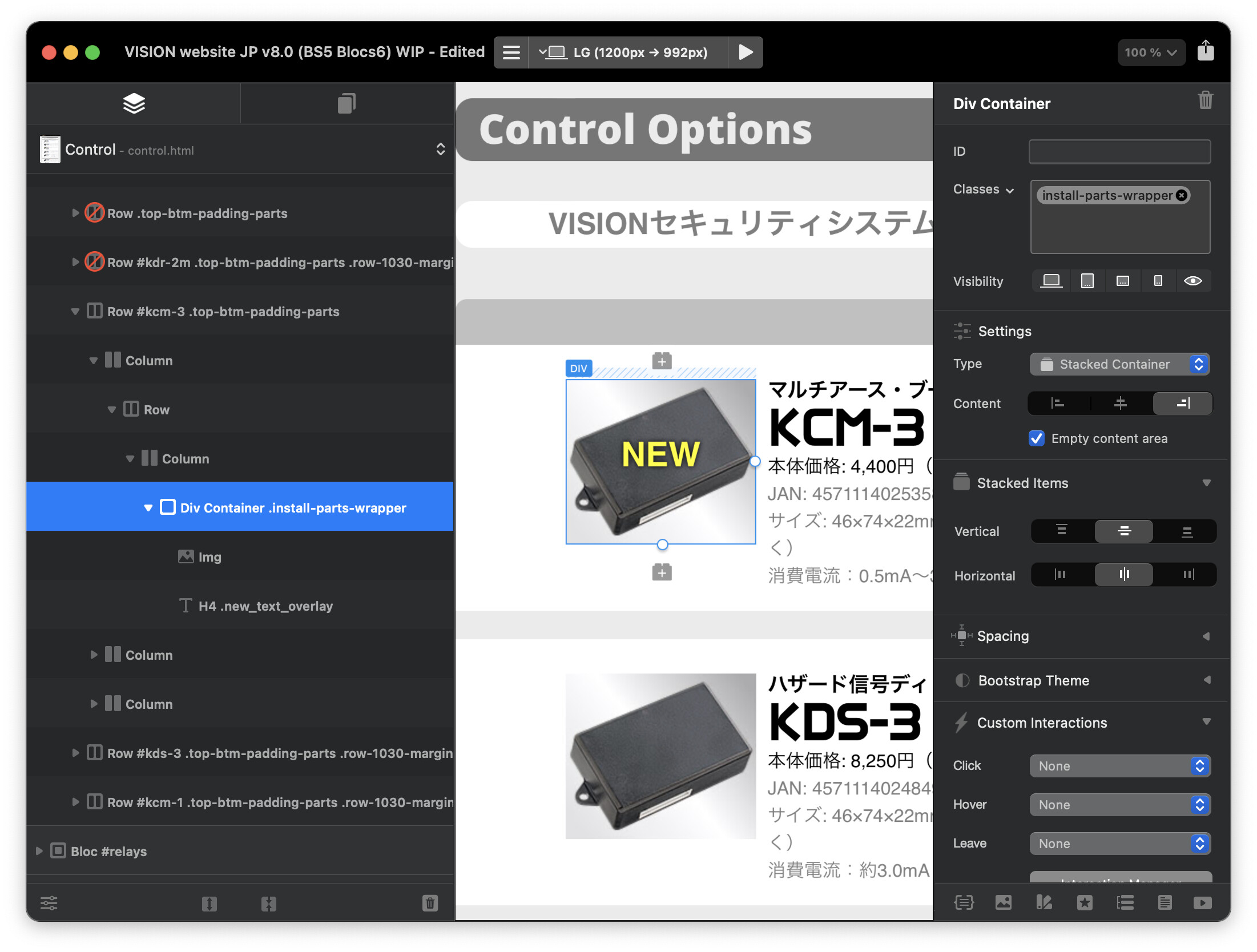 Super simple stuff. It’s a DIV with an image and text inside. In the right sidebar you see it is a Stacked Container.