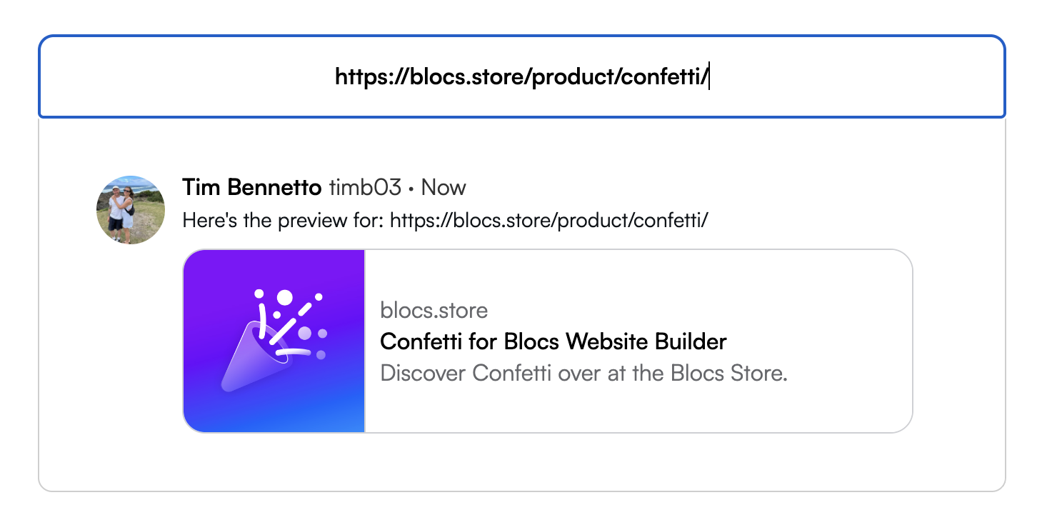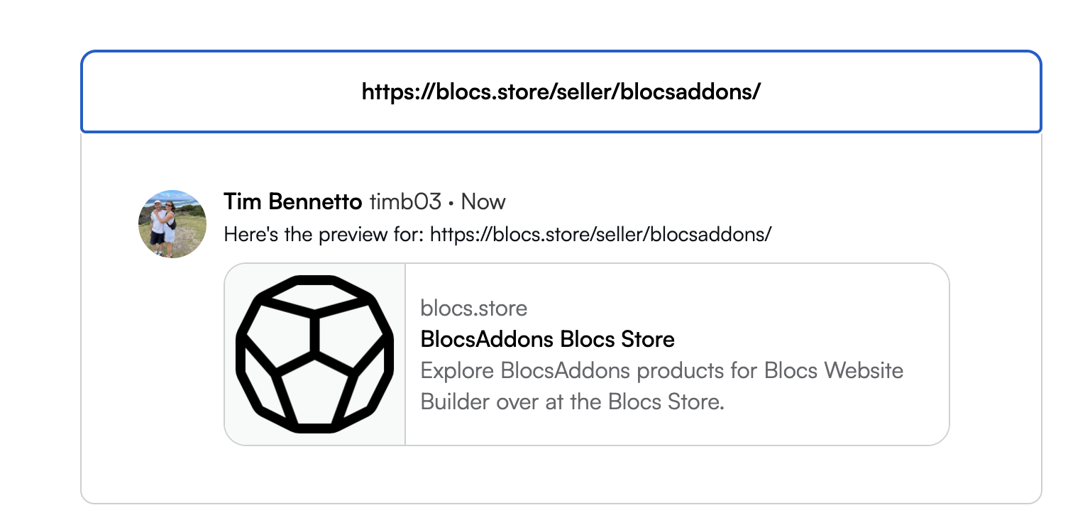Today we have upgraded social cards for the Blocs Store so they are no longer generic and will instead now feature product details and the products preview image (when you share a product page url).