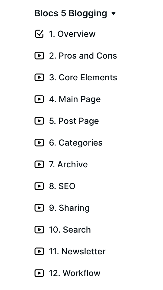 The module from the Blocs 5 Course covering blogging without the CMS platform is available as part of the course (currently on 50% sale), or for free for Minimalist Library users (since I am using the designs from the library in the course).