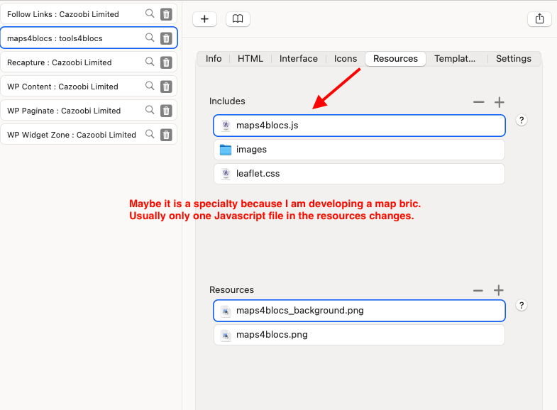 Maybe it is a specialty because I am developing a map bric. Usually only one Javascript file in the resources changes.