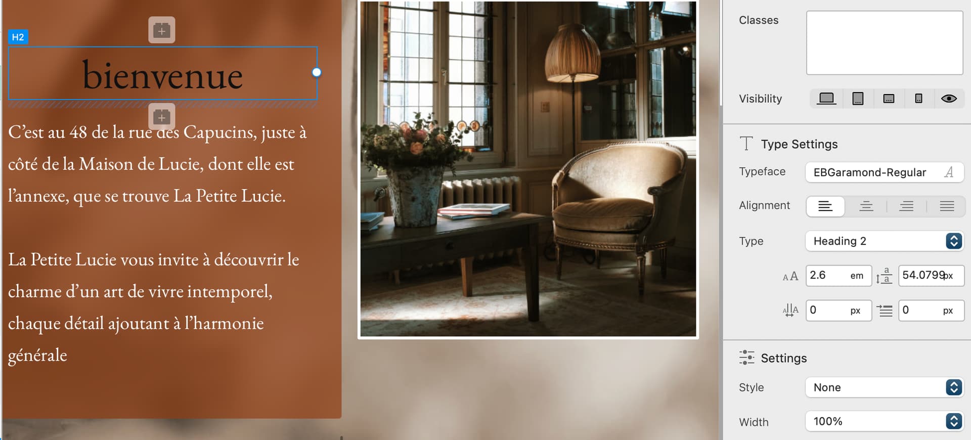 I am using local web fonts. Originally this was Poppins but I switched to EB Garamond in the project settings.