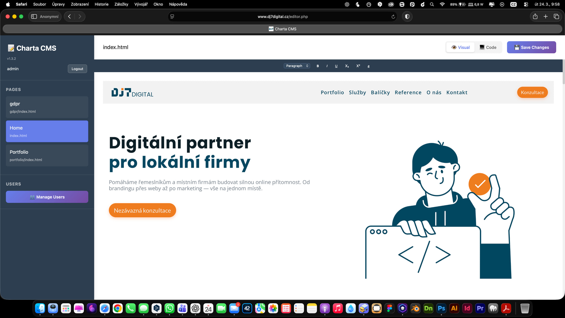 Hello, I purchased Charta CMS, and it launched without any issues after uploading it to the FTP server and switching the website from PHP to HTML. I can see three pages in the admin panel, but I canât edit anything visually (text). Whatâs causing this? Am I doing something wrong? Thank you