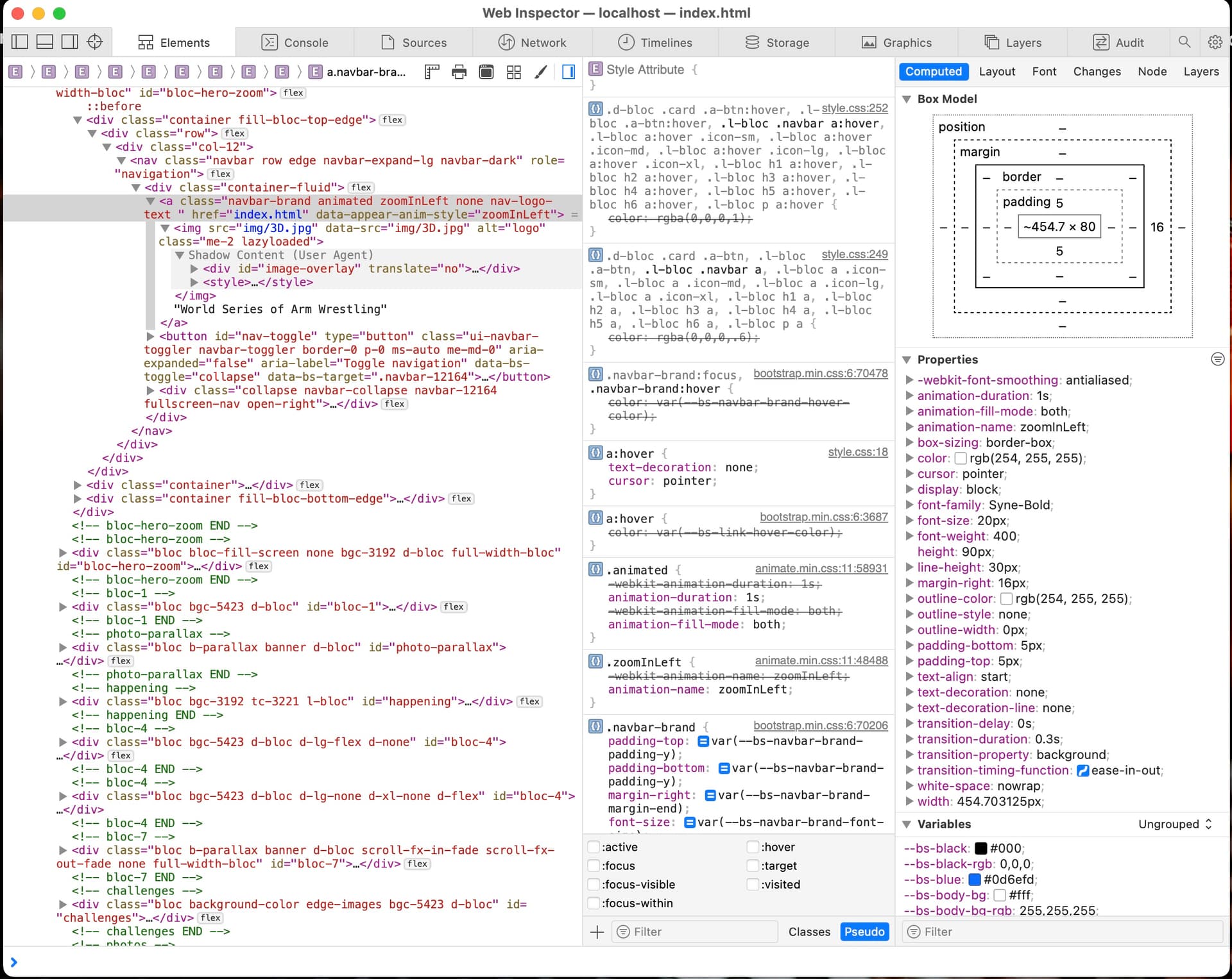 I click on the Logo/Text. Opened .navbar-brand and inserted 50px (to see if it would change) and nothing happened.