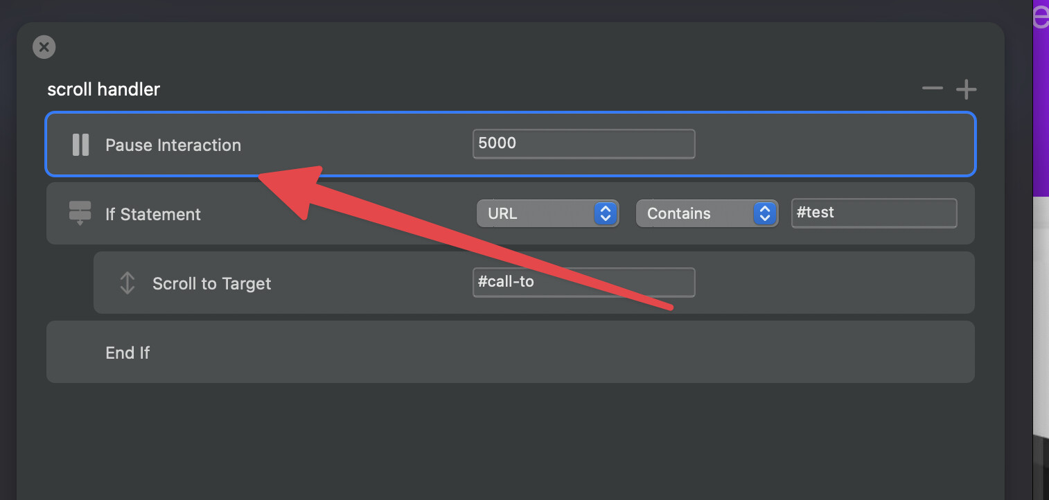 Is there a way to set a delay in the CI before scrolling?