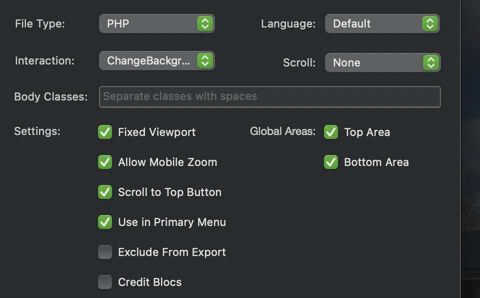 In the Page Settings I changed the Interaction to ChangeBackground
