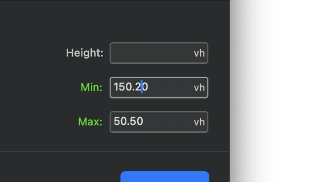 I’ve added decimal value support for the min/max | width/height fields in the Class Editor in beta 2 of Blocs for Mac 6.3.