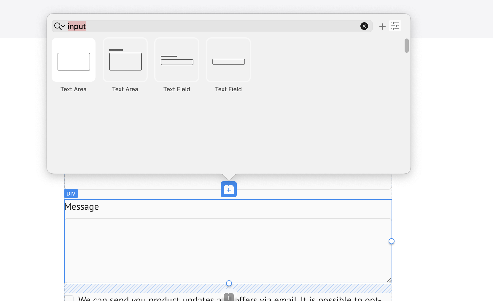 The input brics will give you the basic fields, then make the relative settings you want on each one using the side panel.