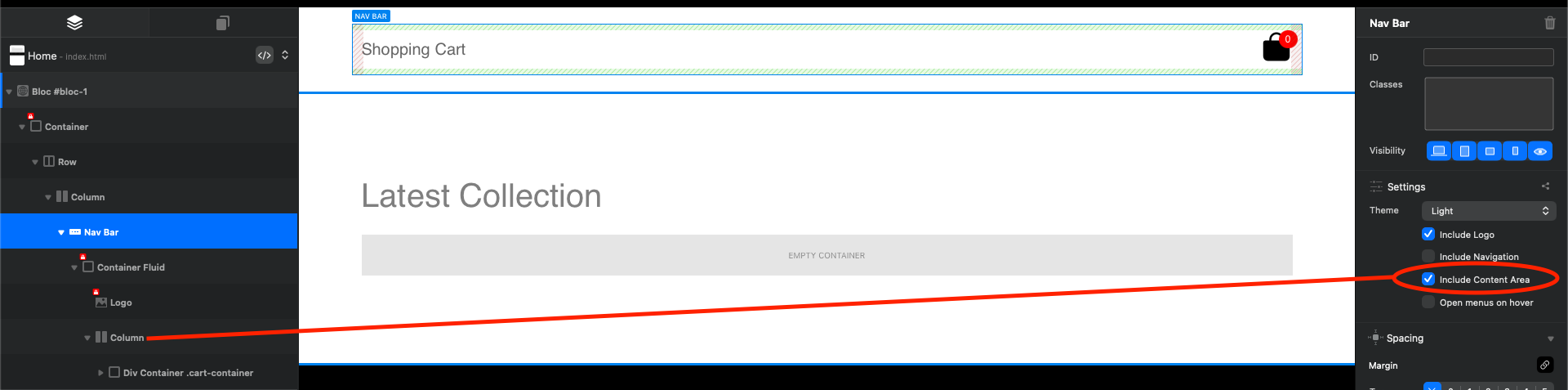 No matter how I try, whether by dragging from the layers explorer or trying to add via the bloc/bric plus sign buttons, I cannot get a new column object inside of a Nav Bar bric.