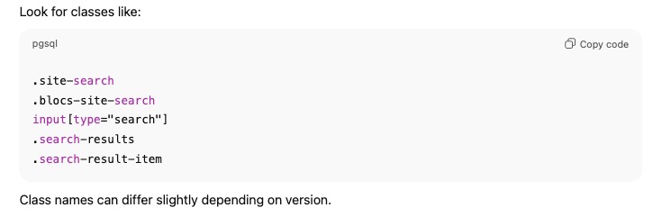 How to set the format (css?) for the Site Search bric. Now it seems to be Times New Roman here in my system, which doesn’t fit with any product design made after 1973. Even back then it was boring.