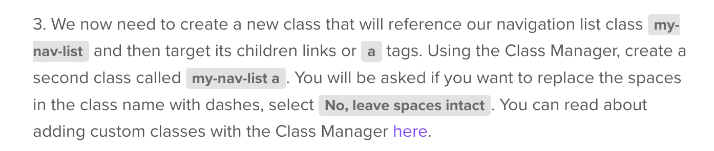 my-nav-list a ( spaces preserved, now targets any link inside my-nav-list class)