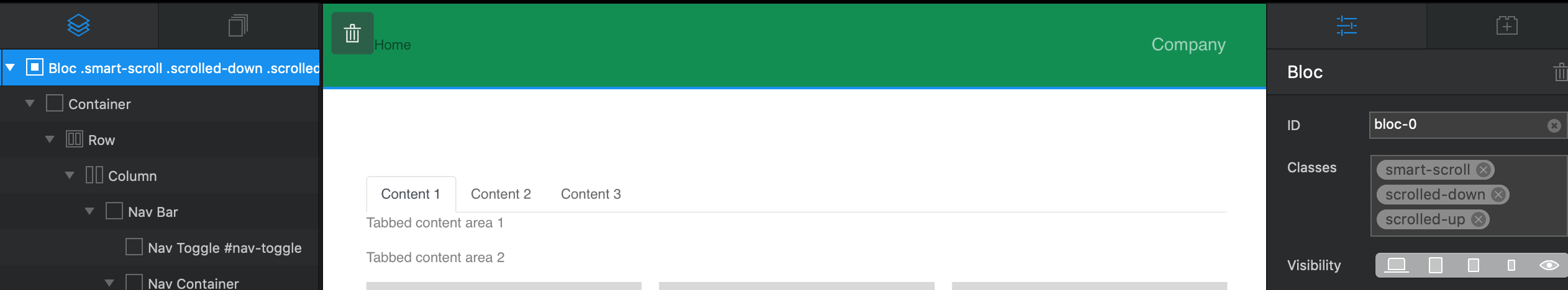<script> document.addEventListener("DOMContentLoaded", function() { $('body').css('padding-top', $('.navbar').outerHeight() + 'px') if ($('.smart-scroll').length > 0) { // check if element exists var last_scroll_top = 0; $(window).on('scroll', function() { scroll_top = $(this).scrollTop(); if(scroll_top < last_scroll_top) { $('.smart-scroll').removeClass('scrolled-down').addClass('scrolled-up'); } else { $('.smart-scroll').removeClass('scrolled-up').addClass('scrolled-down'); } last_scroll_top = scroll_top; }); } }); </script> <style> .smart-scroll{ position: fixed; top: 0; right: 0; left: 0; z-index: 1030; } .scrolled-down{ transform:translateY(-100%); transition: all 0.3s ease-in-out; } .scrolled-up{ transform:translateY(0); transition: all 0.3s ease-in-out; } </style>