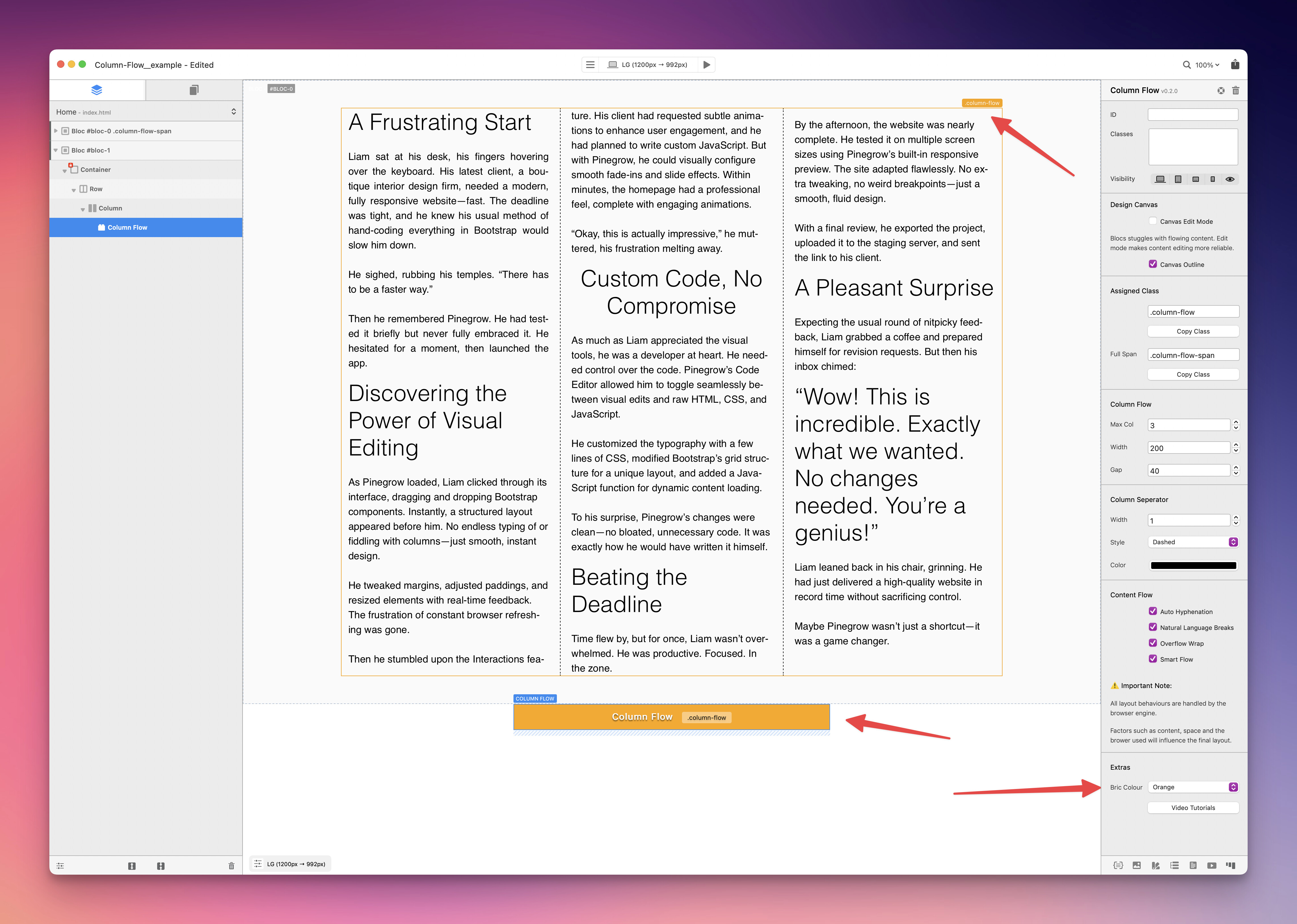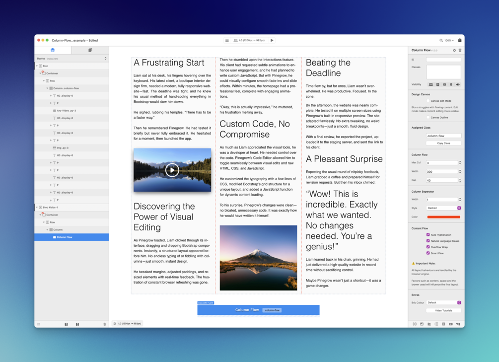 Looks like you have done an amazing job with Column Flow Pete. Well done, I can’t wait to try it out in my current project.