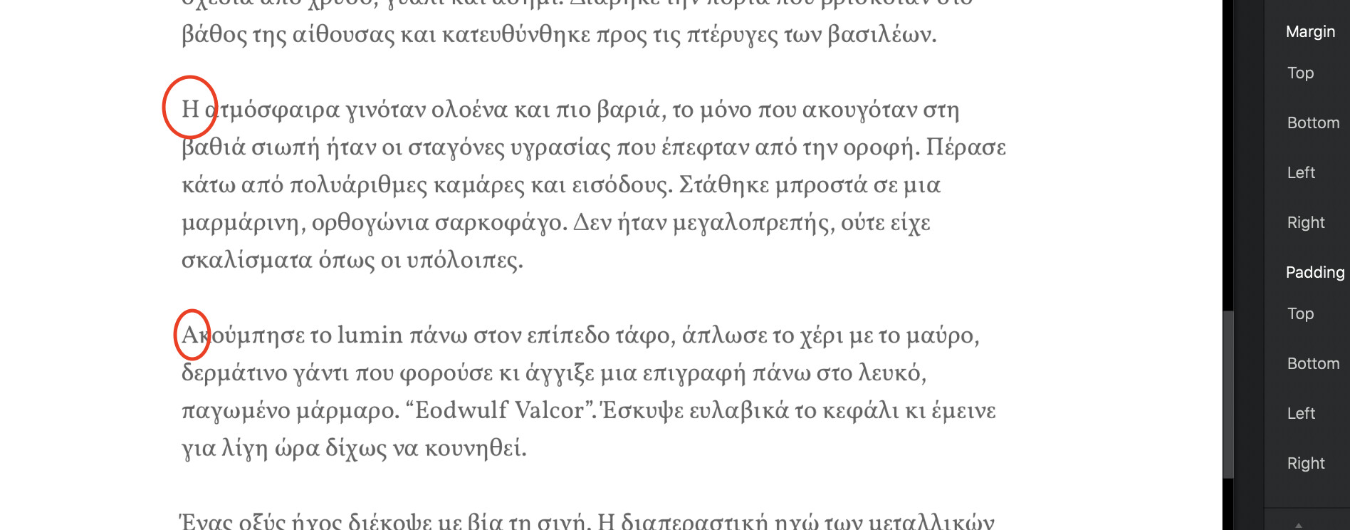 I have a big paragraph bric with lots of text. Actually it’s the first chapter of a book.