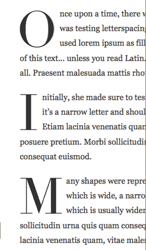 I searched this forum for mentions of “drop cap” and “dropcap” and I can’t find anything relevant, so I am sorry I’m bothering you with this.