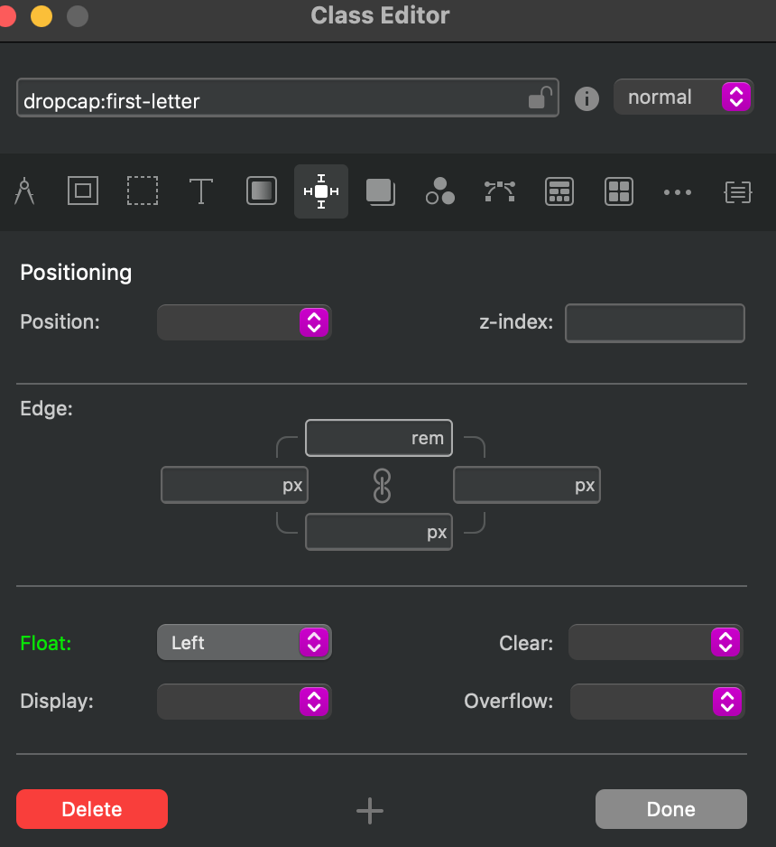 What I am trying to achieve is have the first letter of each paragraph in the paragraph bric to be a drop cap. I have also searched for drop caps online, and there are several ways to get it via CSS, but when I copied the css code in the Code Editor and tried to invoke the class on a Span-Wrapped letter, the class doesn’t even show as available.