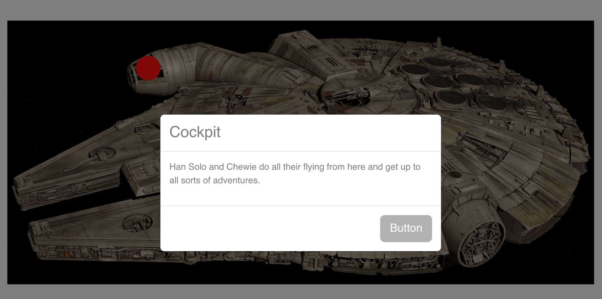 The idea is a responsive image, responsive sizing of the markers, the markers pulse to invite people to click, it opens a modal. This can be bashed about to do other things if needed.
