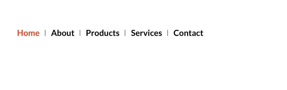 With reference to the menu, to do what you want will require that you make a custom nav bar for use on your site. Given that all you want is to put a character between each menu link, the easiest option is to creat a text bric, such as an H6 bric. Simply type out the links you want displayed and place any character you want between the words of your link. In my example below, I used a vertical line with a double space before and after it.