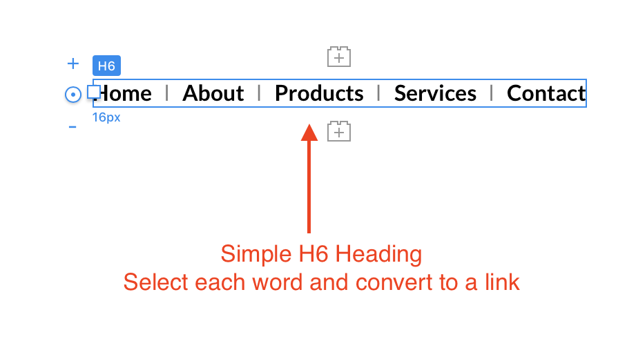 Select each word in your nabber and convert them to links (you will see the link option above the text box when you’ve highlighted each word). Once the links have been created, you can create a custom class to style your links how you wish. In my example, I styled the normal state with the colour Black, and the over state with the colour Red. Now select each link in turn and apply the class. The end result looks like this in a browser.