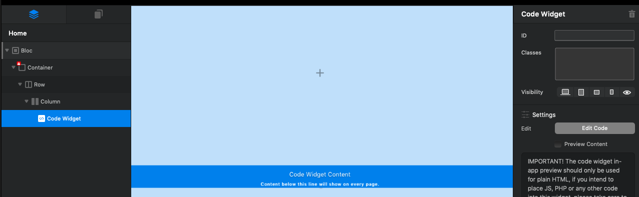 8º - Add the following code inside the “HTML CODE” bric:
