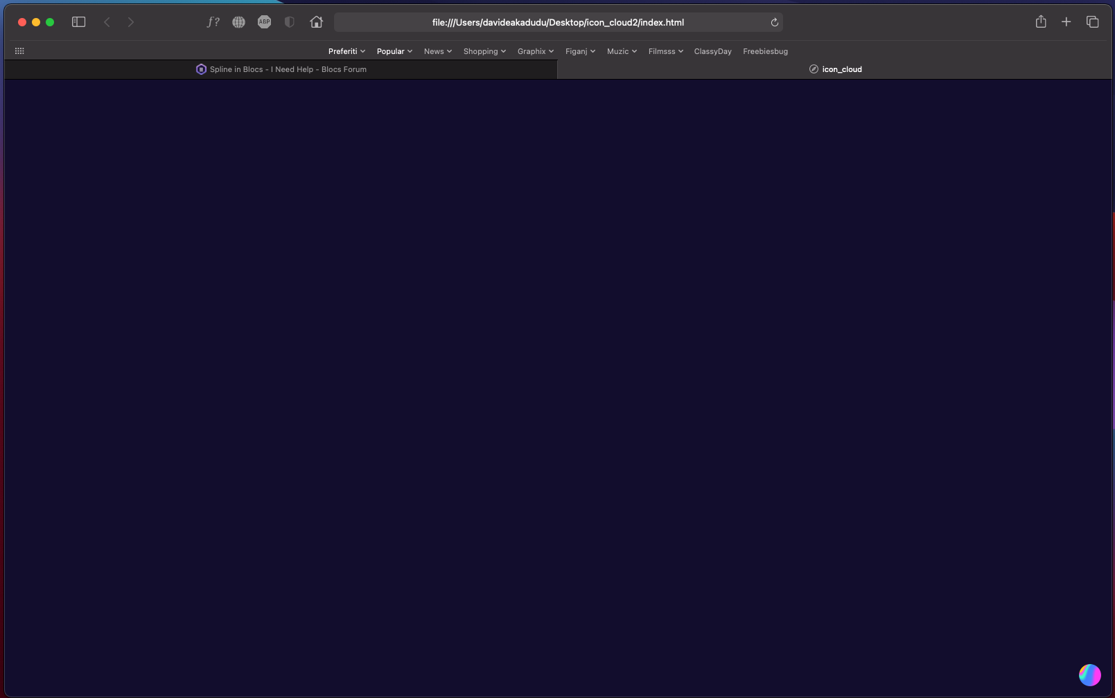 now the problem is that if I export as web content what you can see in the screenshot (which is just a premade example in Spline with a text), it gives me what you see in the second screenshot (nothing),.