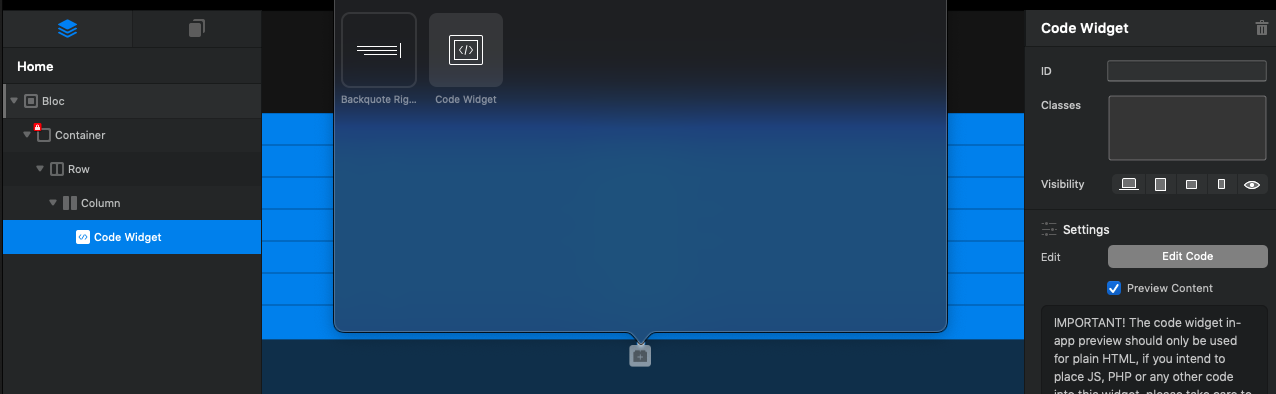 6º - Add a “html code” bric inside the structure you create in the 1º point: