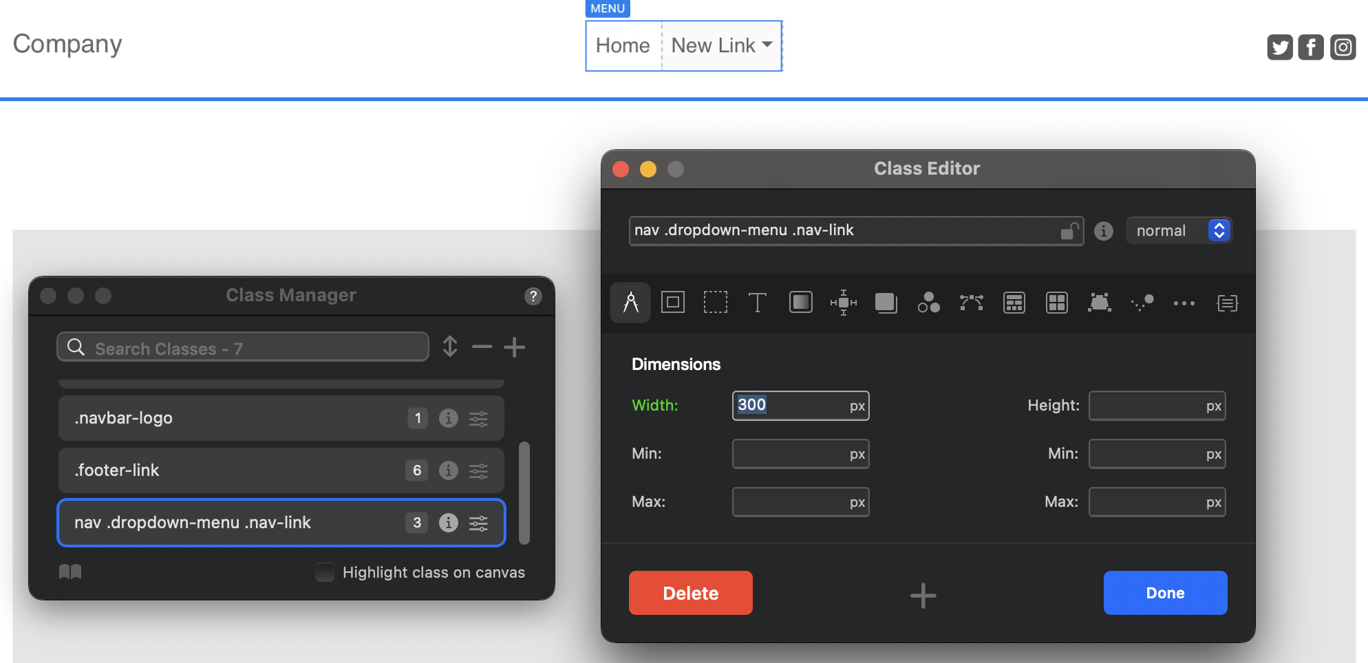 Now, double-click the newly added class in the Class Manager and start customizing it. Feel free to add width, background color, and any other styling you like.