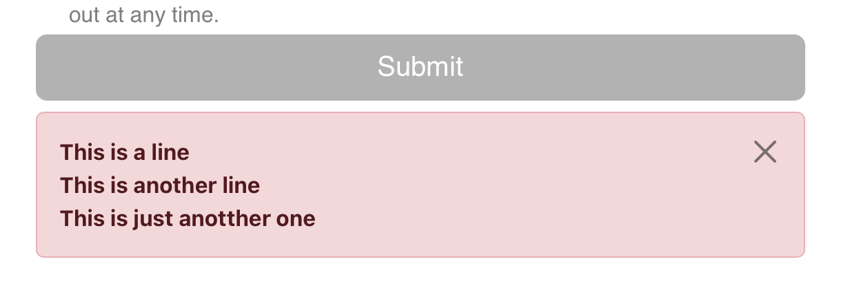 Because this message is stored as a data attribute value, you can use a line break tag eg. <br> otherwise it has no way of knowing you want a new line here.
