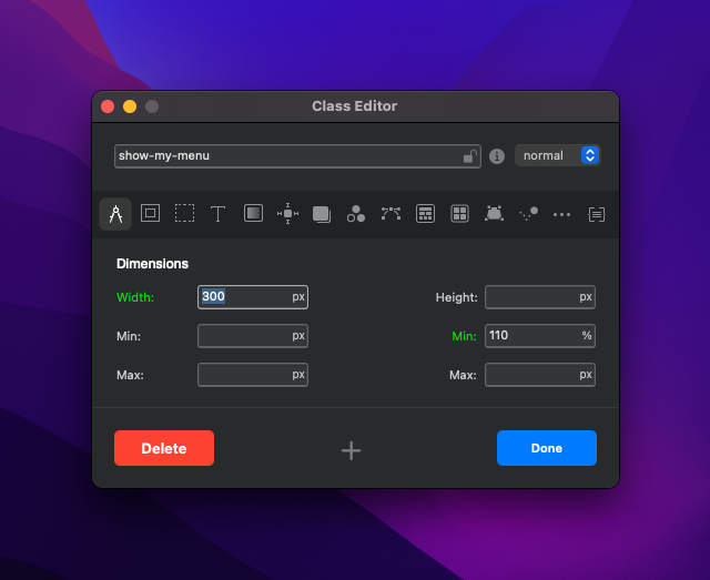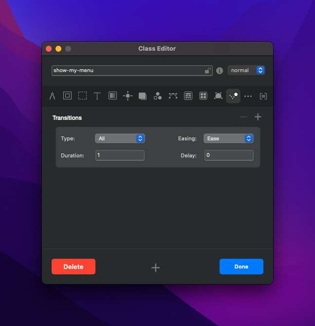 Now to add a class that will allow menu to fly in. In the class manager add a new class (this class, doesnt need to be linked to anything). Call this class show-my-menu.