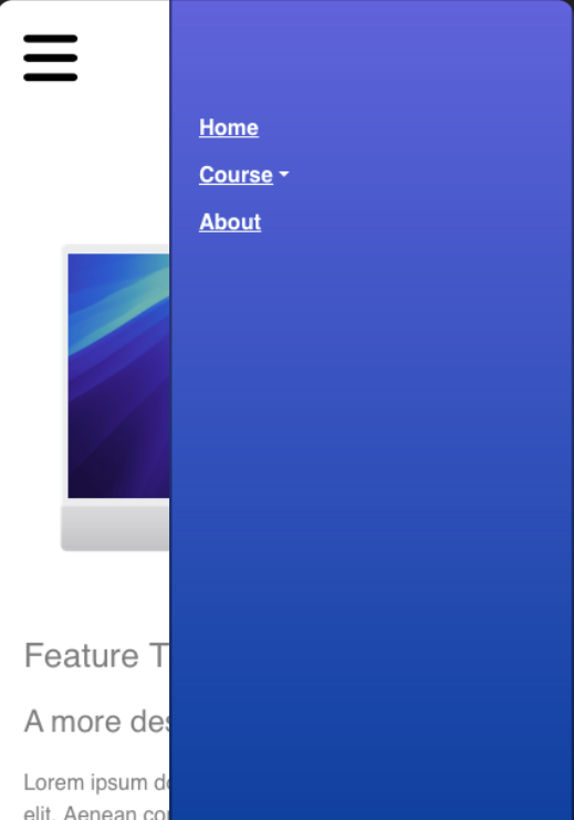 I added a second class called ‘dropdown-menu’ this will edit the appearance of the secondary menu (its currently white and linked to the nav item ‘Course’) I added the background colour, the same as my fly in menu, but you can choose whatever suits you.