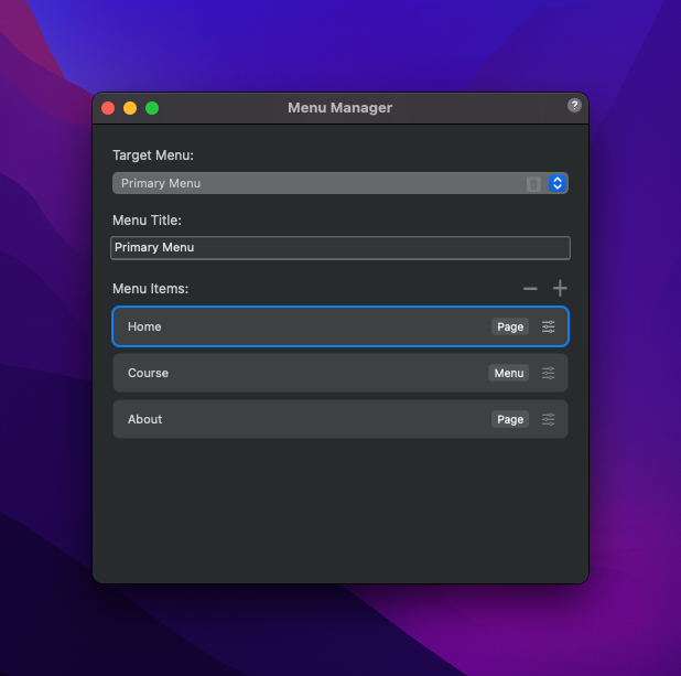 I also created a second menu linked to the ‘Course’ option. The reason for this was that I remember people having problems with the current built in side menu, not showing the secondary menu’s.