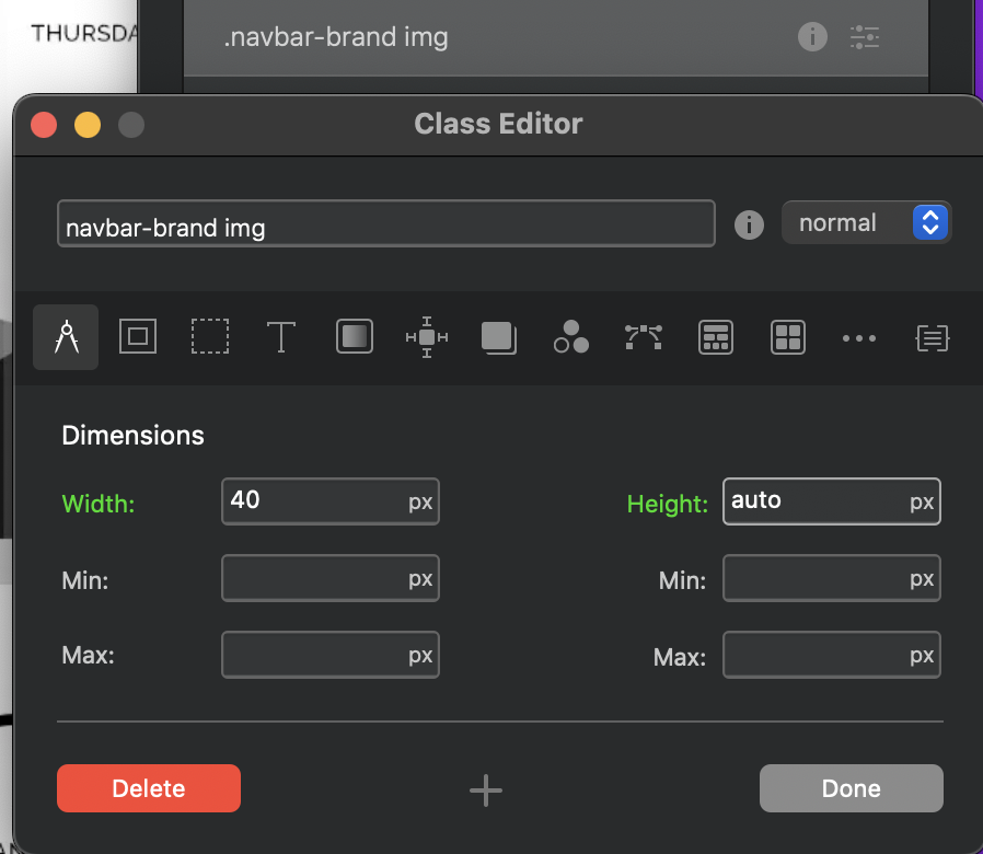 The logo box (png image) in navigation menu does not scale correctly in all other anchor breakpoints than LG (1200px > 922px). What am i doing wrong? I have made style for the menu text in Class Editor, but the logo box doesn’t have any style definitions.