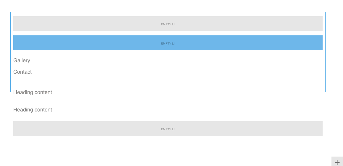 As you add content, the word empty LI is replaced with the content bric - in the example above, a heading bric was placed in the first two empty lines. You can now edit the text by selecting it.