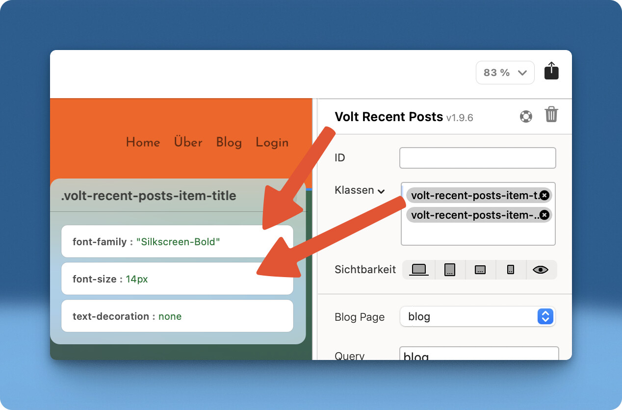 My website uses a globally light-colored font. In one specific section with a light background, Volt is embedded. In this area, the text should naturally appear in a dark color, and ideally use a different font and font size (which is locally available).