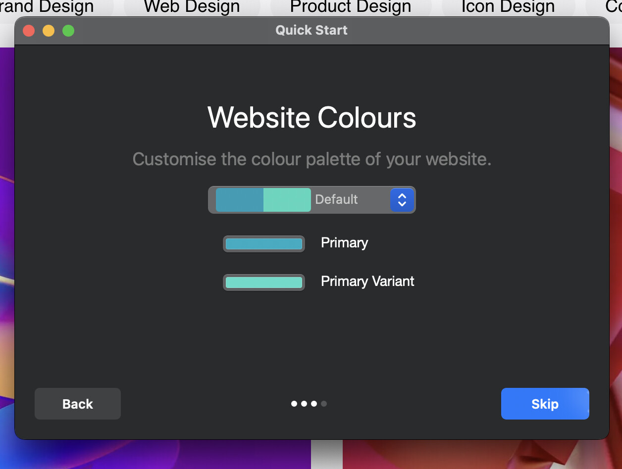 @Norm is this something you might be able to take a look at? Perhaps it would be a cool onboarding feature to be able to set the primary and secondary colors, perhaps even including the primary-variant and secondary variant, when starting a new WordPress template (much like the onboarding goes when starting from an existing html template for a regular html site)?