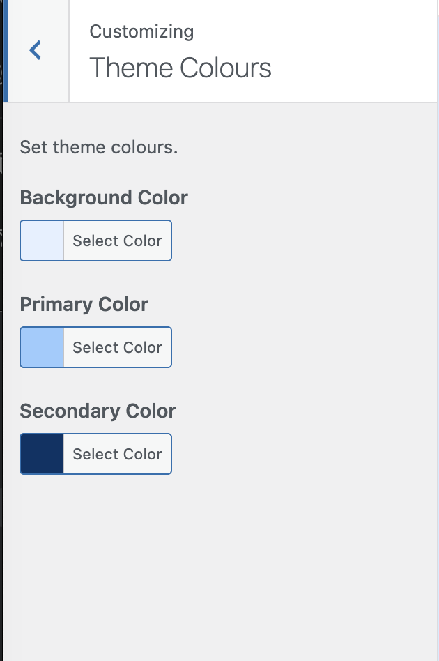 However, only the background color updates when using the color picker in the WordPress customizer. The primary and secondary color pickers don’t update the actual primary and secondary colors in the theme. But if I change them manually in Blocs, I see all elements correctly being updated (so I know it has been set correctly).